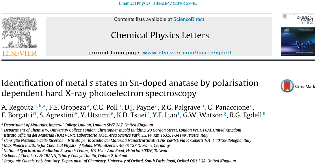 A little while ago now Chemical Physics Letters published our paper on polarisation dependent hard X-ray photoelectron spectroscopy (HAXPES). This technique is still relatively new and not many publications are available. It shows particular potential for the identification of s states in valence band. The experiments were undertaken at the Taiwanese beamline BL12XU at SPring-8.