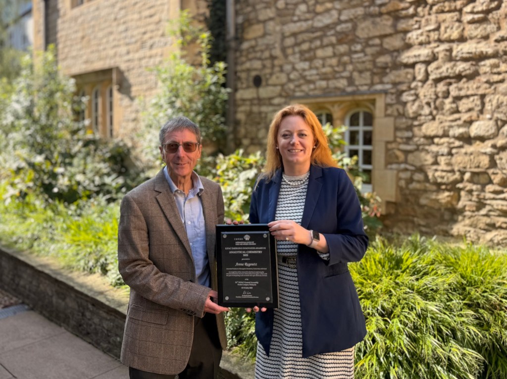 After being awarded the IUPAC Emerging Innovator Award in Analytical Chemistry for 2025 (you can read the official notice here) earlier this year, Dr Derek Craston, President of the Analytical Chemistry Division, delivered the award to Oxford in person last week. The award was presented to Anna in recognition of her leadership in exploring the structure-electronic structure relationship in inorganic solids with a goal of integrating such materials into opto-electronic devices. Anna delivered a remote award presentation during 53rd IUPAC General Assembly in Kuala Lumpur, Malaysia (sadly she was not able to attend in person.